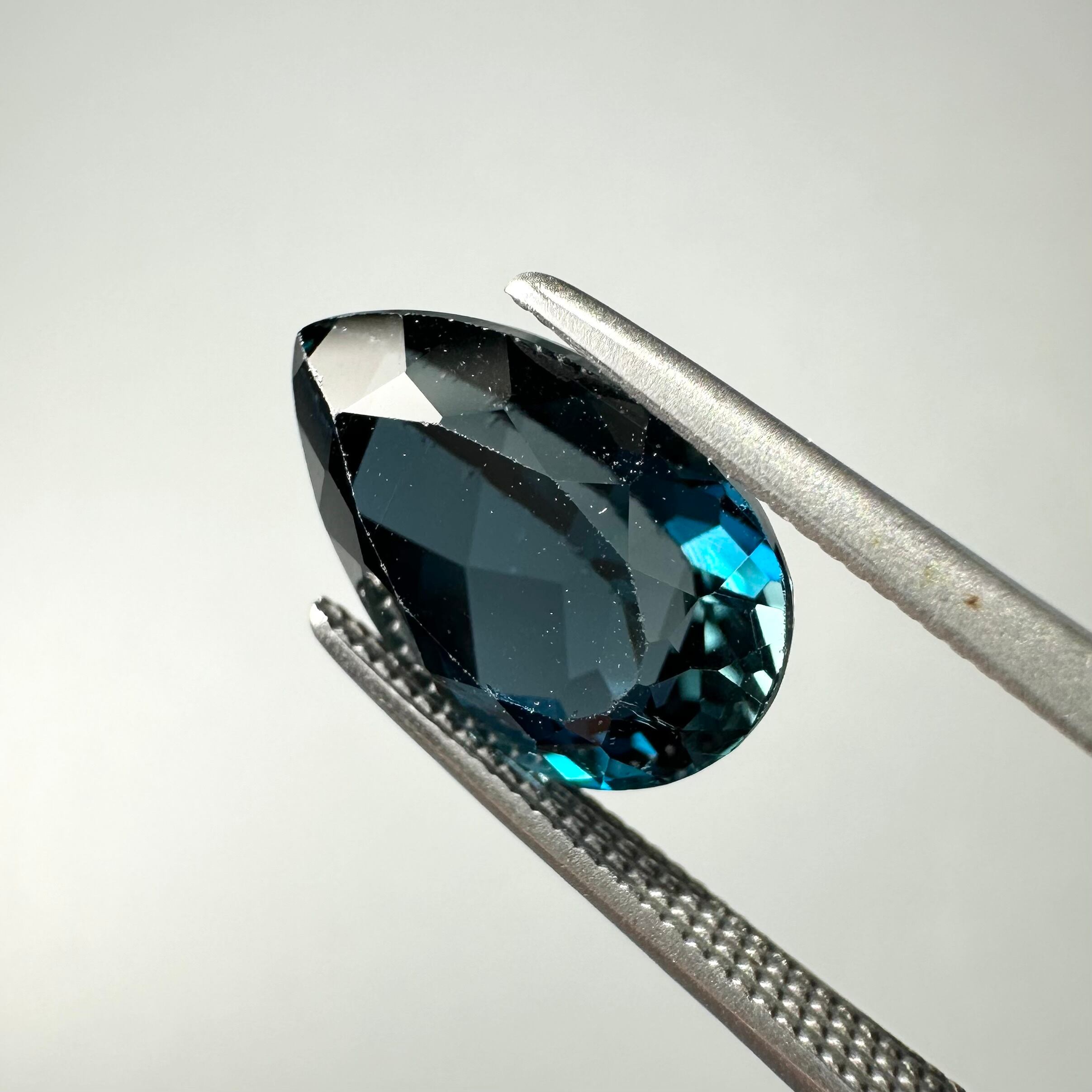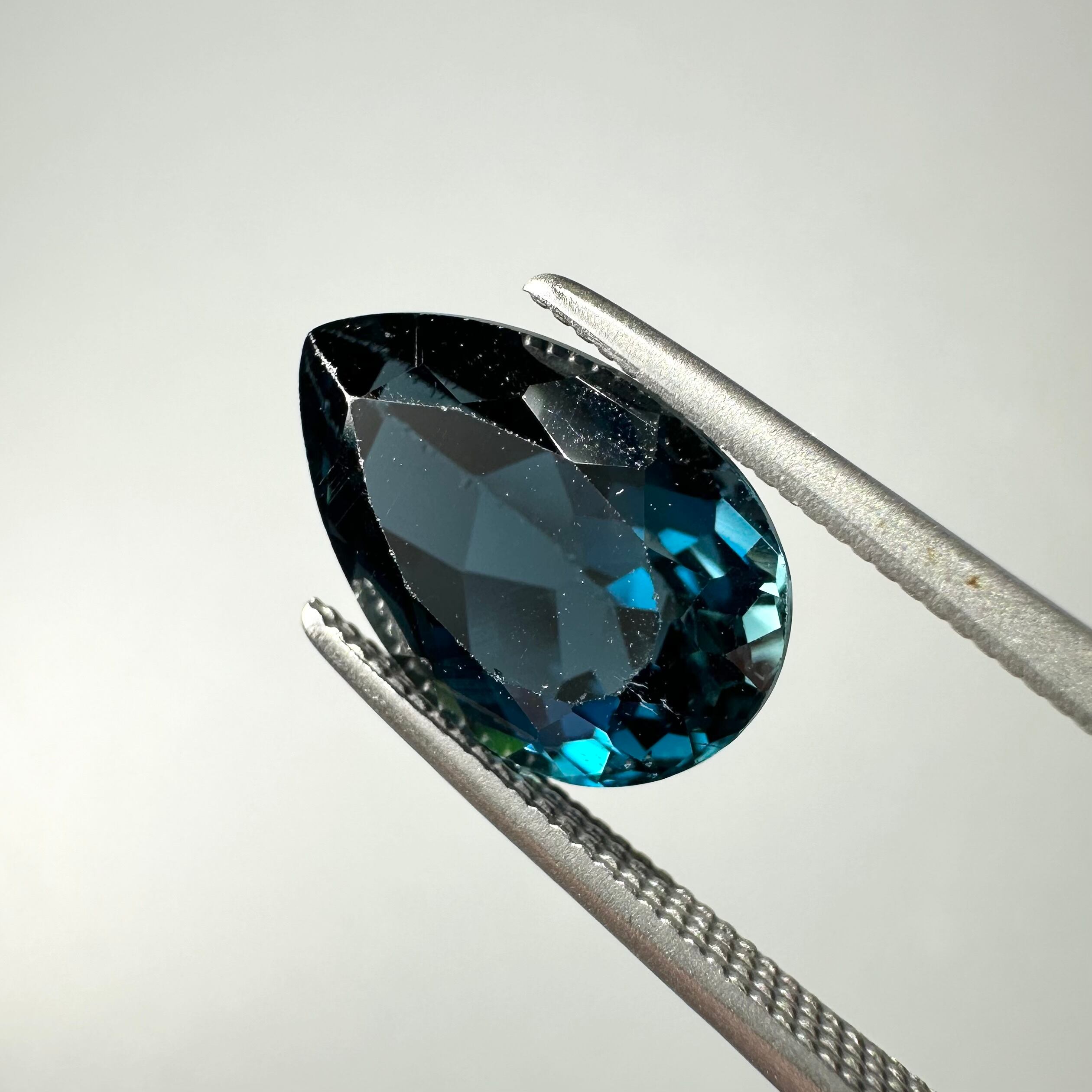 色良し、テリ良し、カット良しのロンドンブルートパーズです。深い海に太陽光が届いて煌めくような、そんな気品溢れる美しさを放っています。角度によって濃い箇所とのコントラストも素晴らしく綺麗です。
