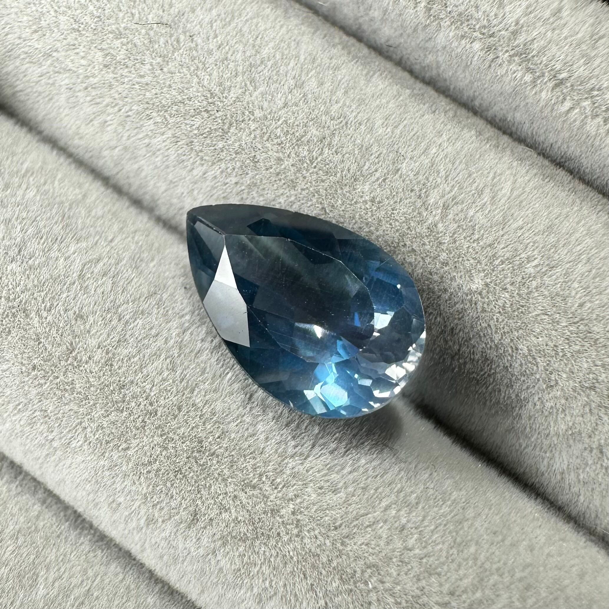 昨今、新しい産地としてトレンドとなったジンバブエ産。青は青でも儚さを纏う特別な色合いですね。可愛らしい蛍光にもその個性が現れているように見えます。透明度がかなり高く、3ctに近い特別な存在感ある子です。