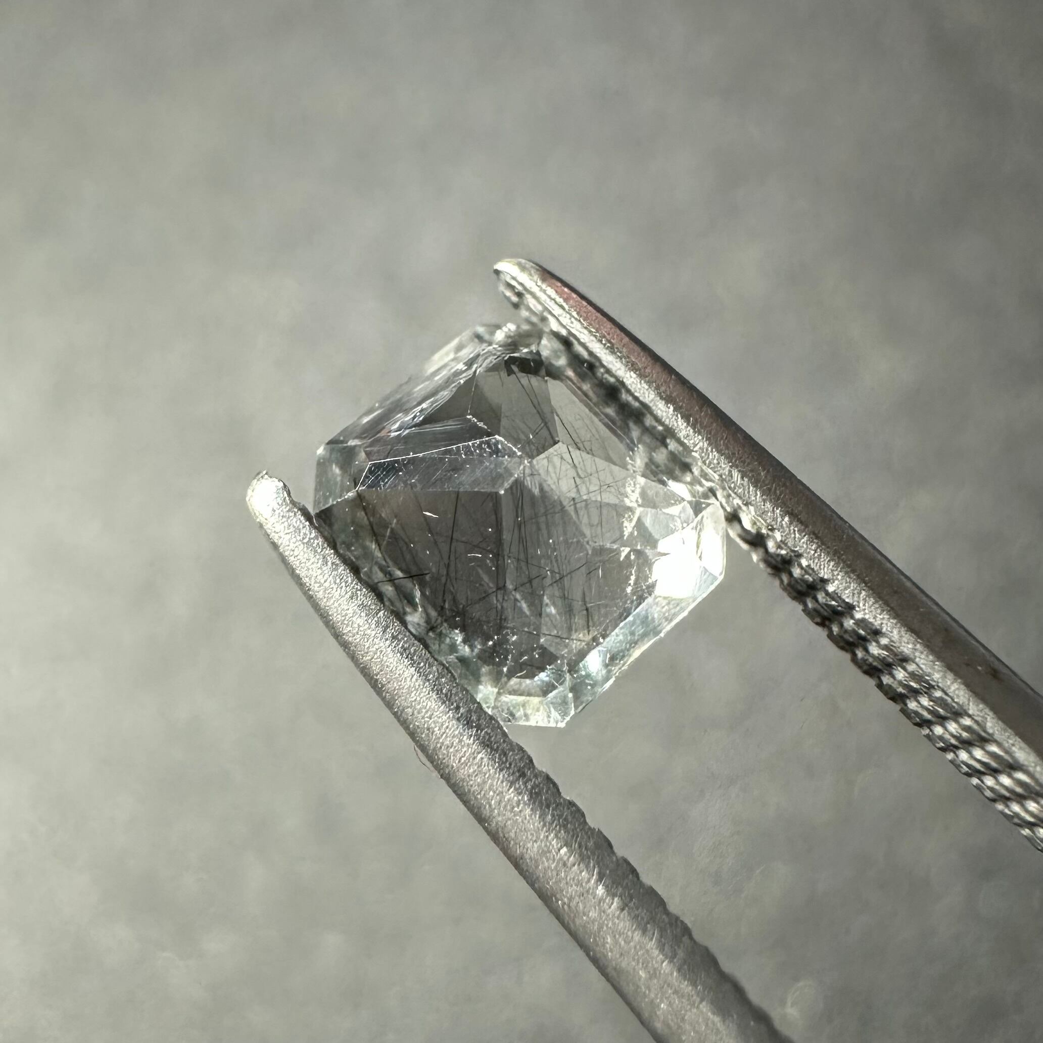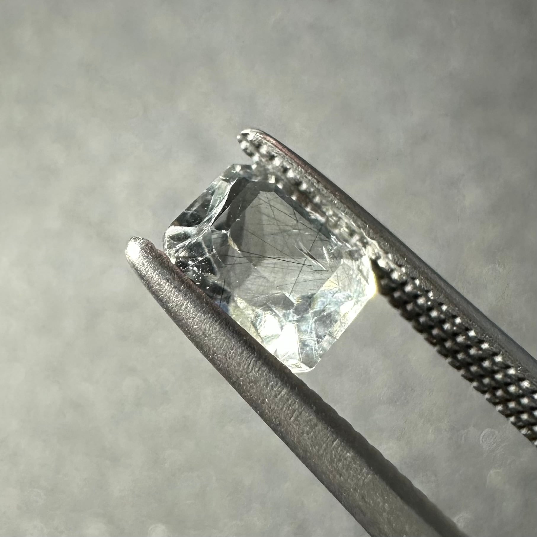 気持ちグレーやライトグリーンが入ったような色合い、最大の特徴は内包されている針状のインクルージョンです。これはおそらく特徴と産地からアクチノライトだと思われます。