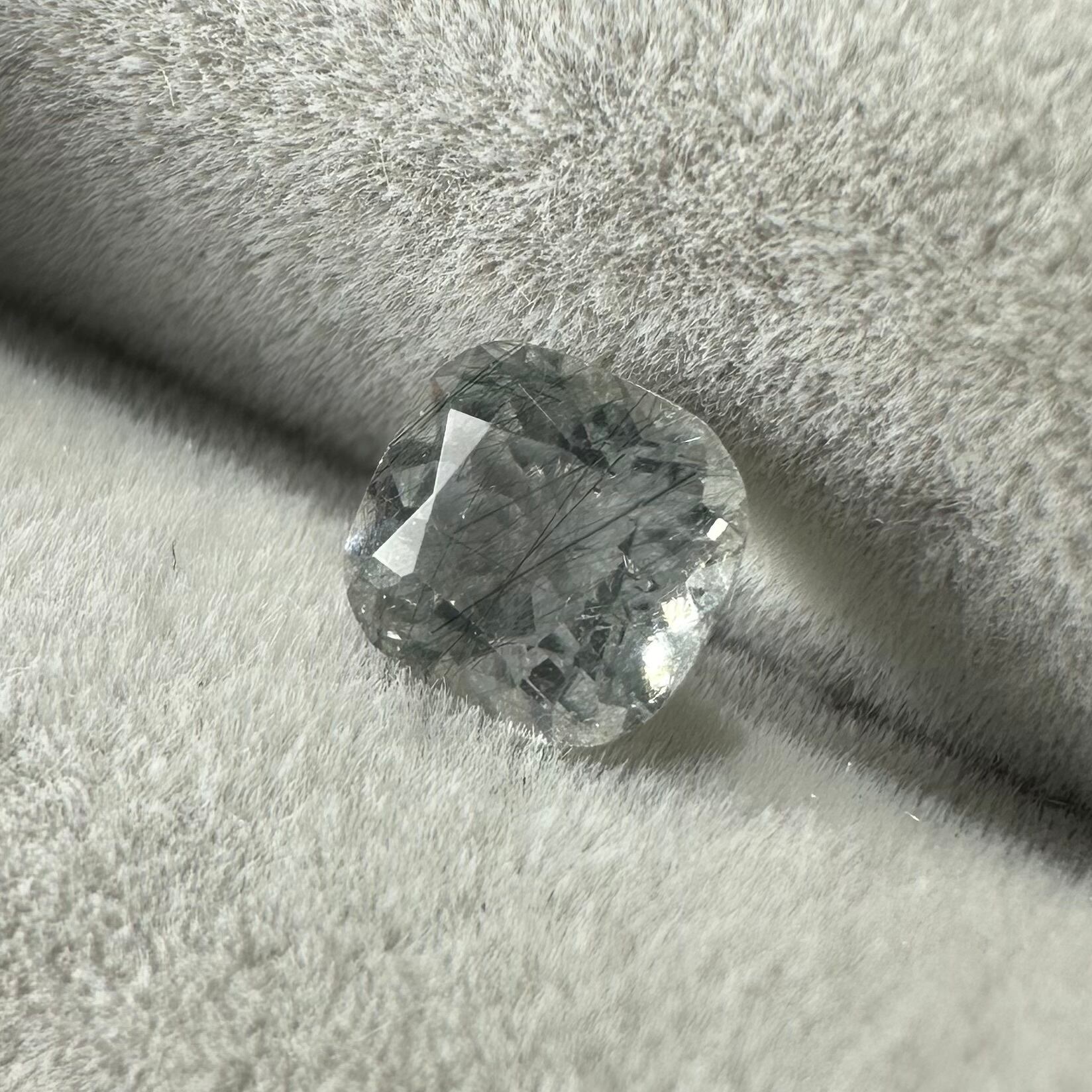 気持ちグレーやライトグリーンが入ったような色合い、最大の特徴は内包されている針状のインクルージョンです。これはおそらく特徴と産地からアクチノライトだと思われます。
