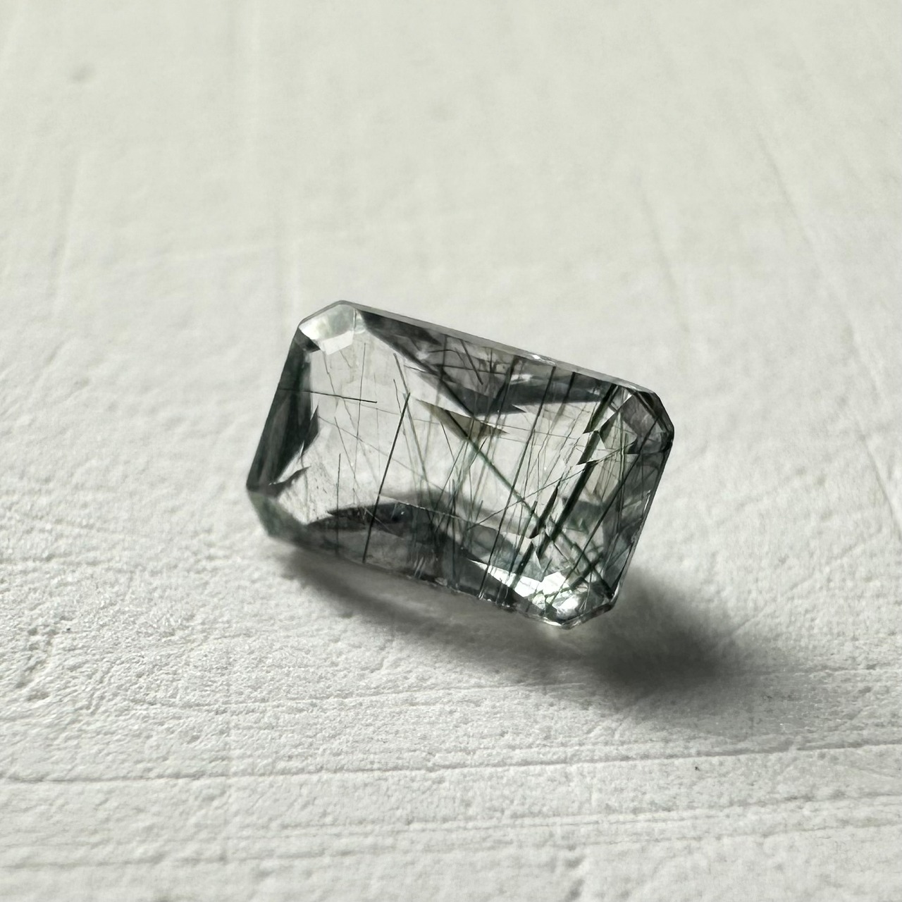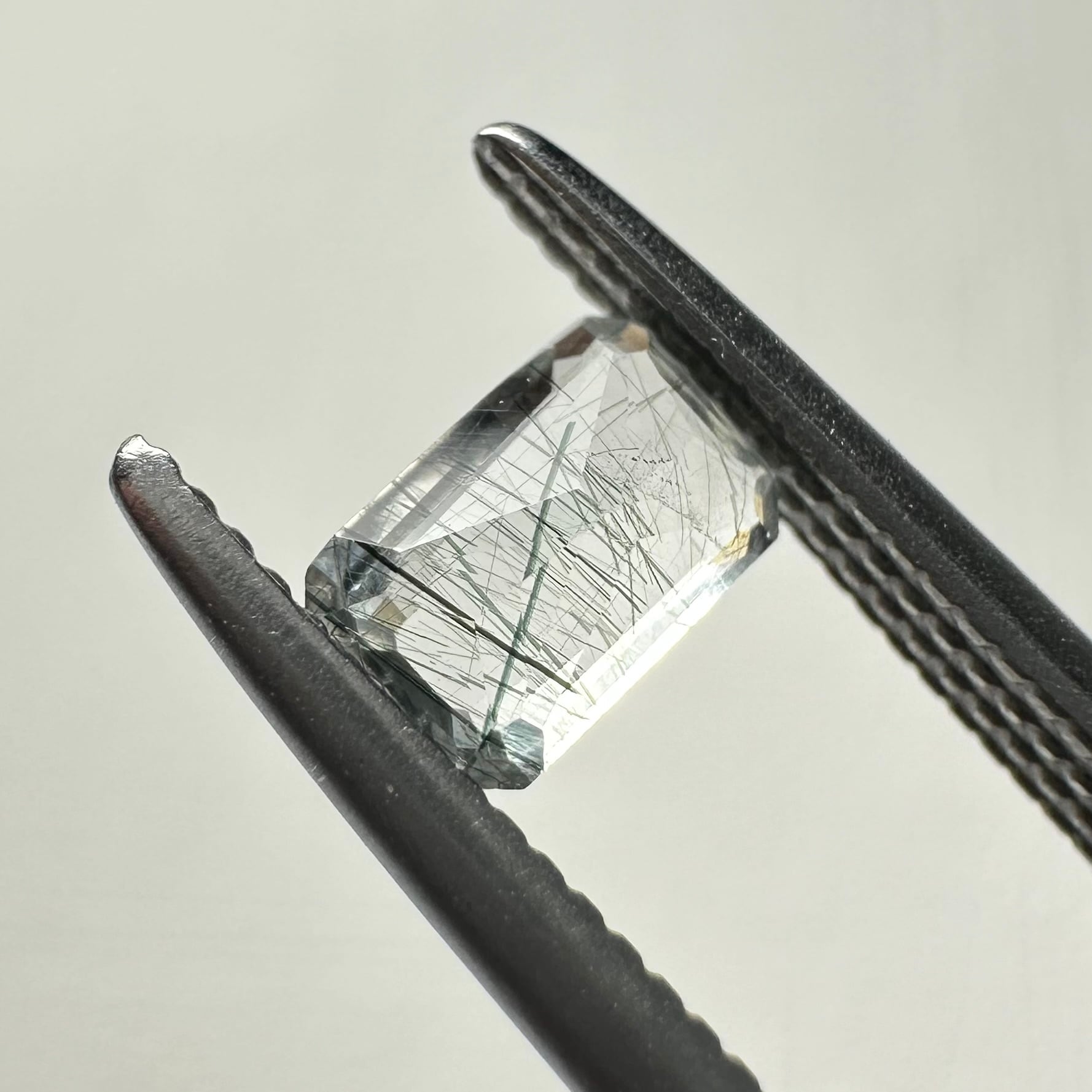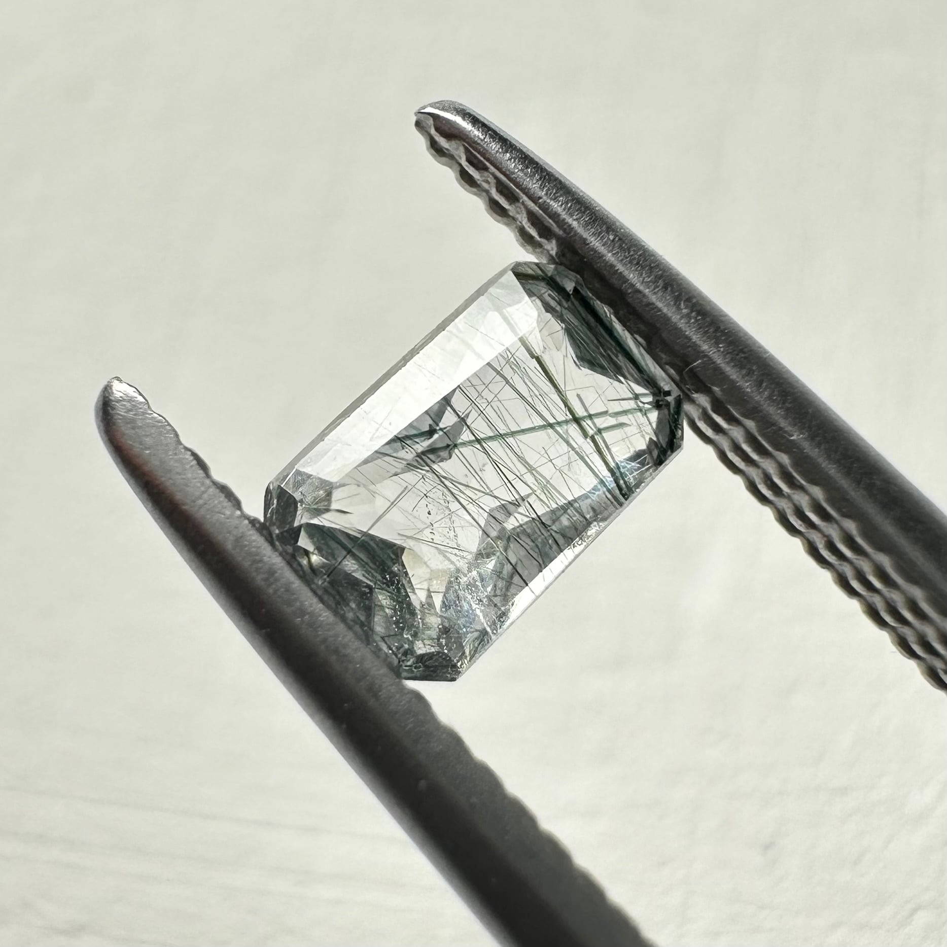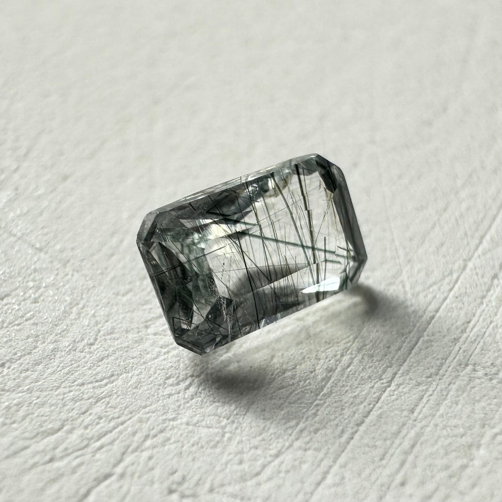気持ちグレーやライトグリーンが入ったような色合い、最大の特徴は内包されている針状のインクルージョンです。これはおそらく特徴と産地からアクチノライトだと思われます。