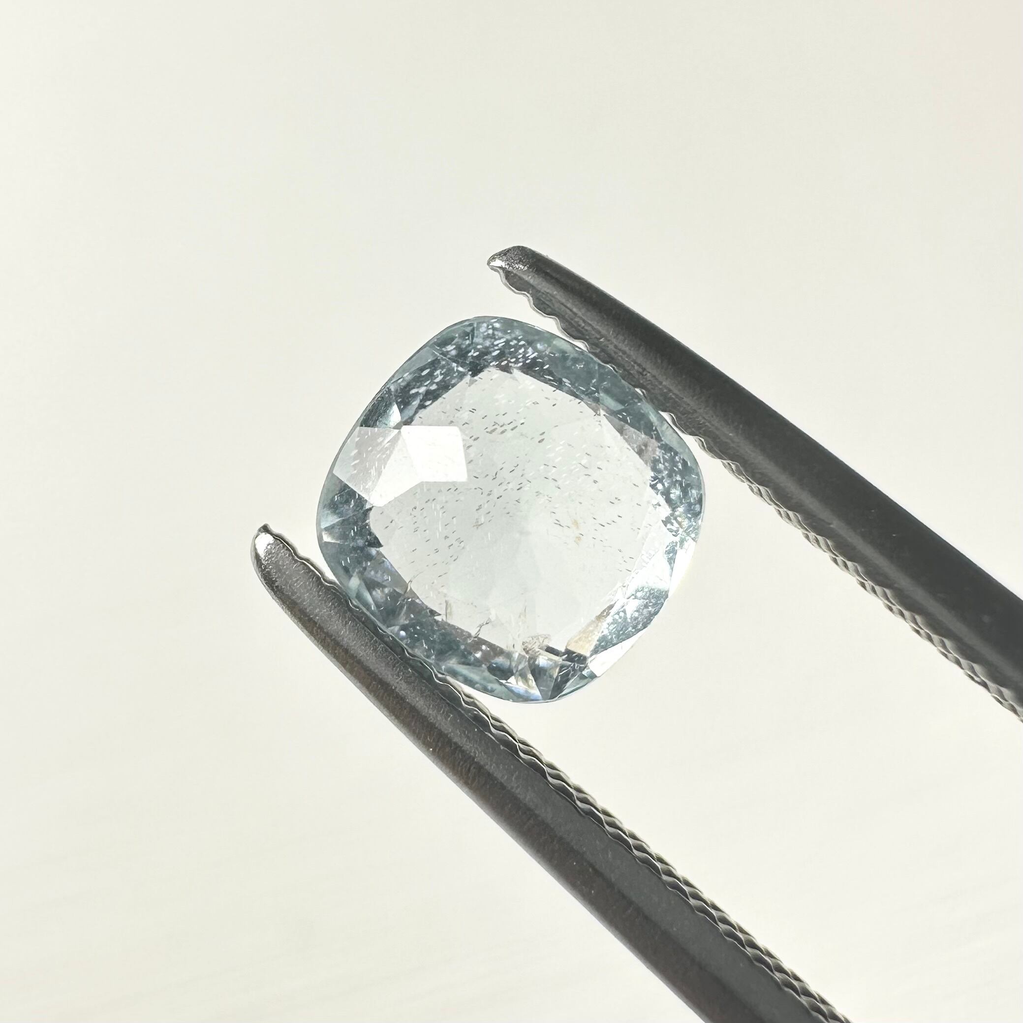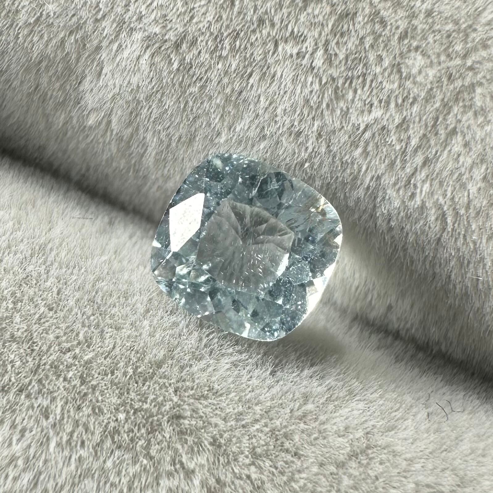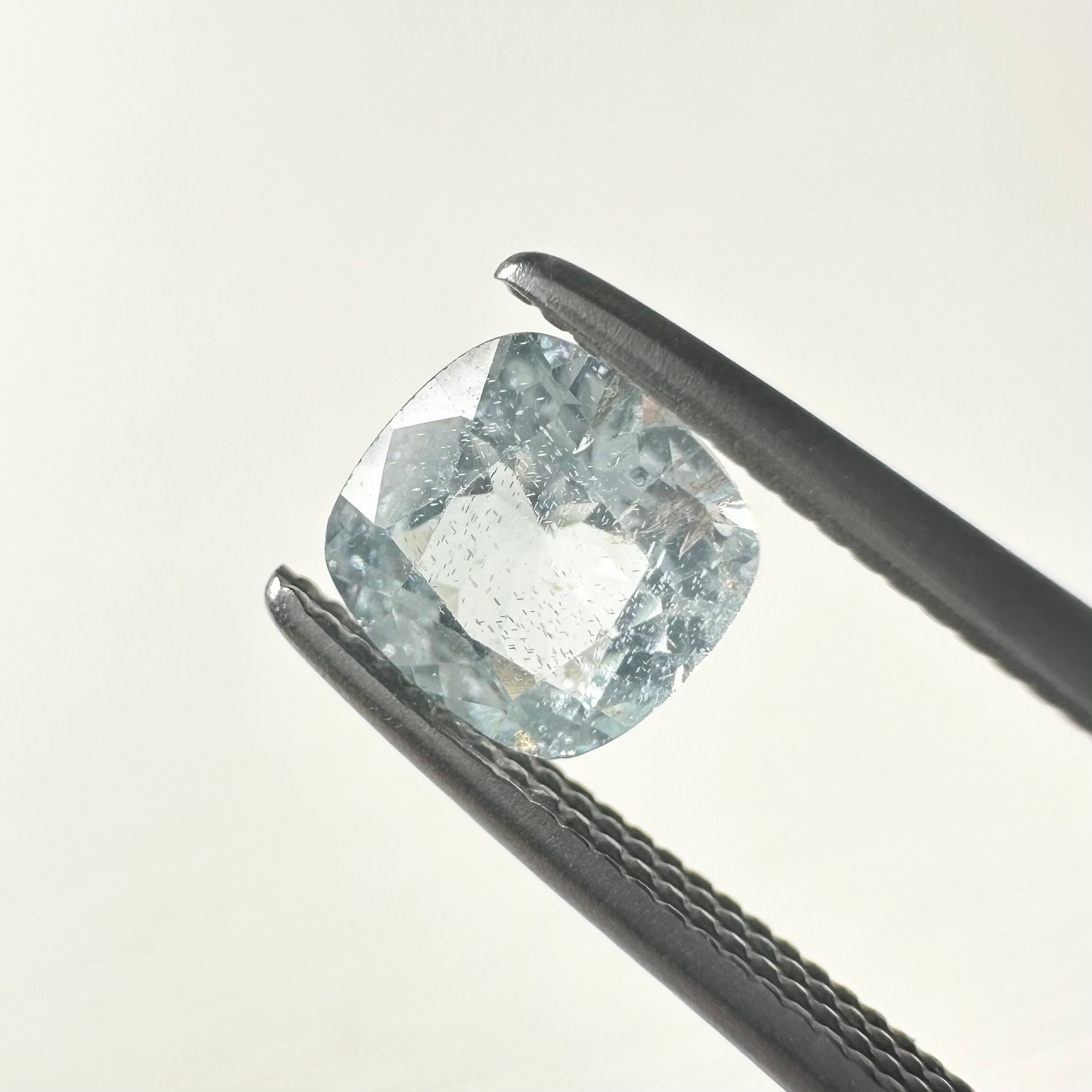 以前カラーレスで市場に流通したキラキラしたインクルージョン入りで、絶妙にブルーとグリーンが入り混じったライトカラーのアパタイトです。蛍光有り。