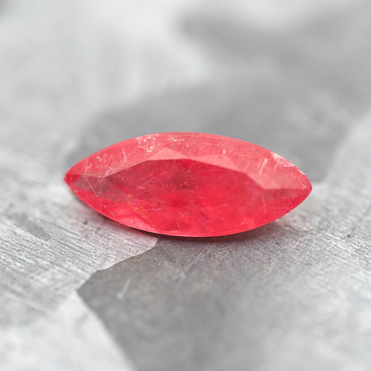 ロードナイトの名前は、バラの花びらを想像させるような美しさから、ギリシャ語でバラを意味する「rhdon(ロドン)」に由来して名付けられました。和名は「薔薇輝石」。輝石の名前が使われているのですが、正しく「準輝石」に属するマンガン系の鉱物。